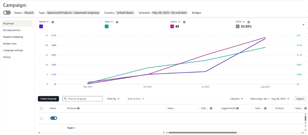 With low bids, your ads can appear on competitor product pages or generic searches that overlap with your category. This helps intercept traffic that might otherwise convert with your competitors. It’s a subtle but effective brand defense strategy.