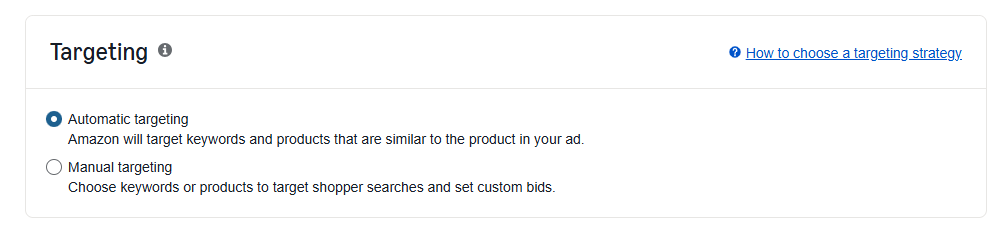 - Select Automatic Targeting as the targeting type.